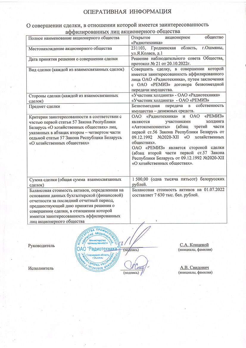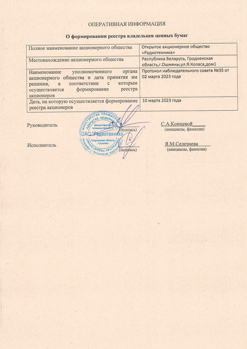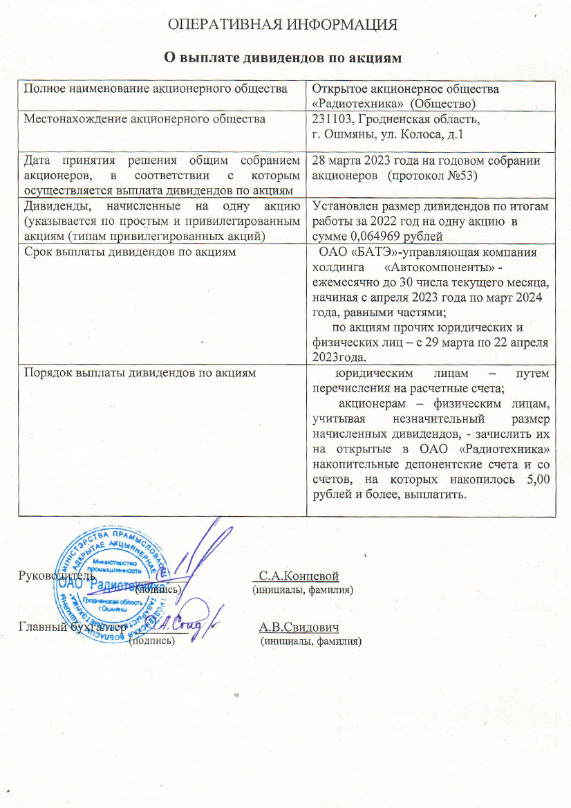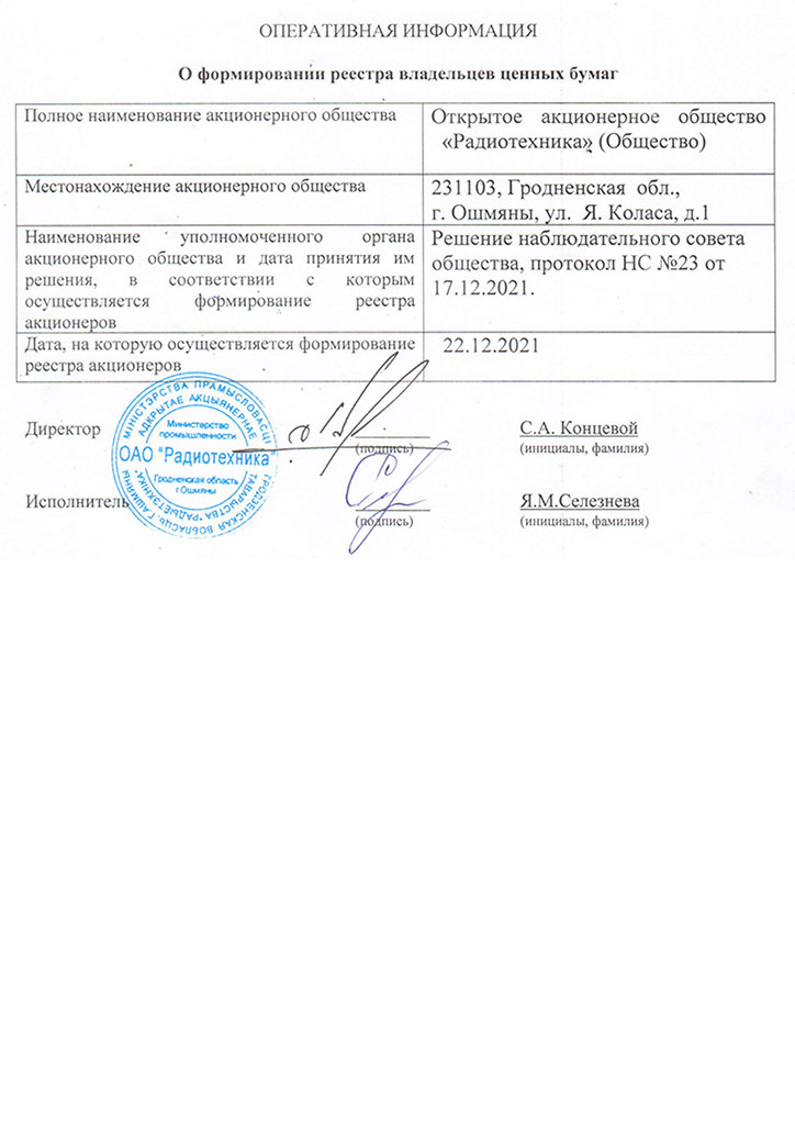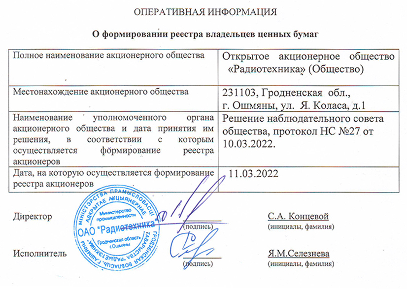 ОАО «Радиотехника» (Общество) проводит годовое общее собрание акционеров 28.03.202309/03/2022