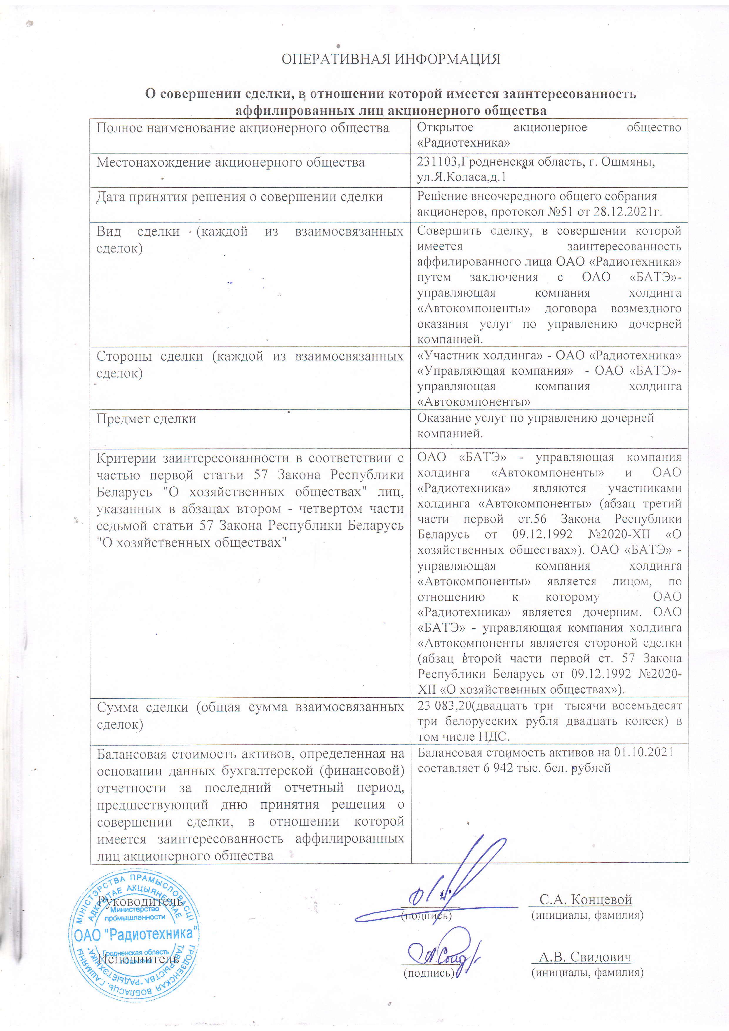 ОАО «Радиотехника» (Общество) проводит годовое общее собрание акционеров 29.03.2022Информация для акционеров