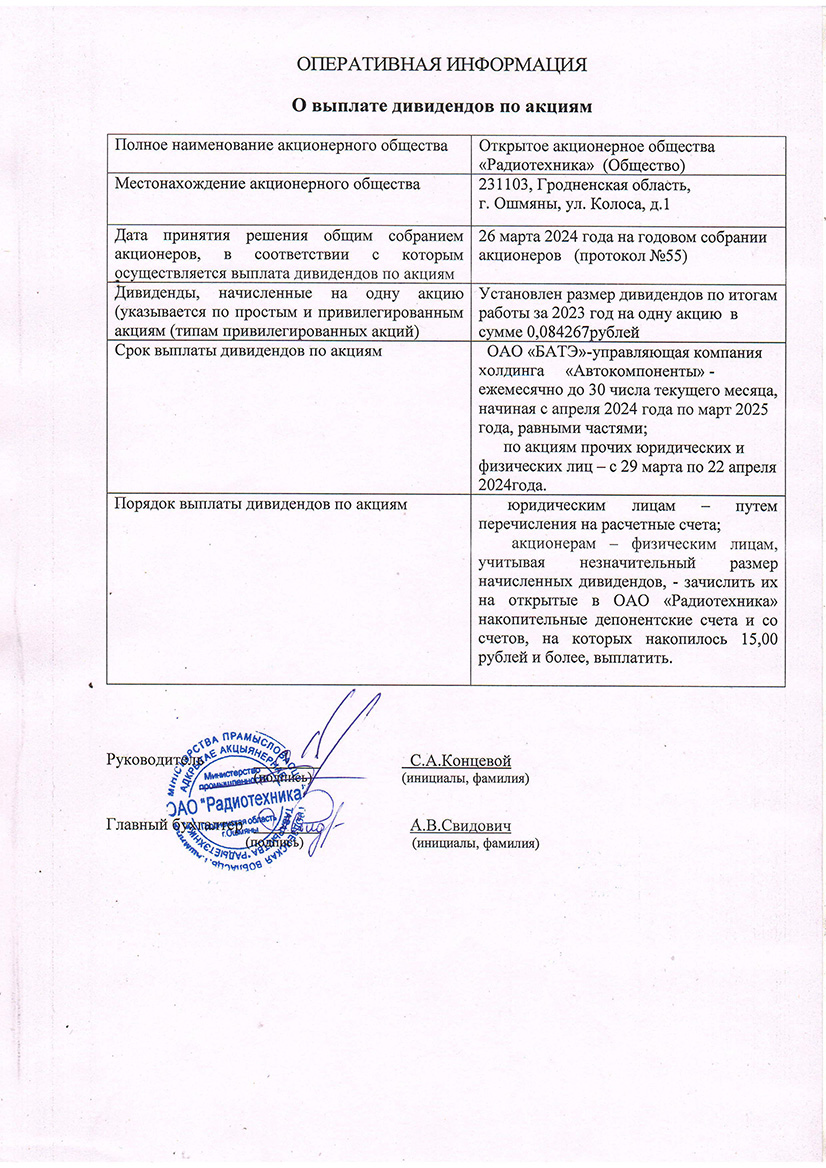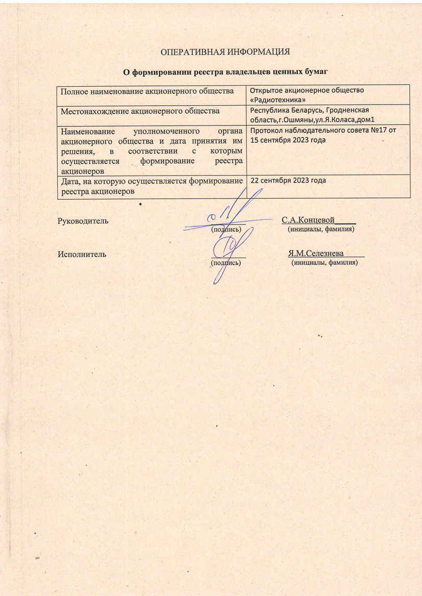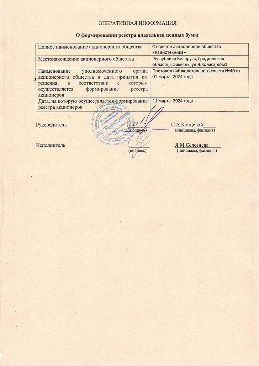 ОАО «Радиотехника» (Общество) проводит годовое общее собрание акционеров 26.03.202418/09/2023