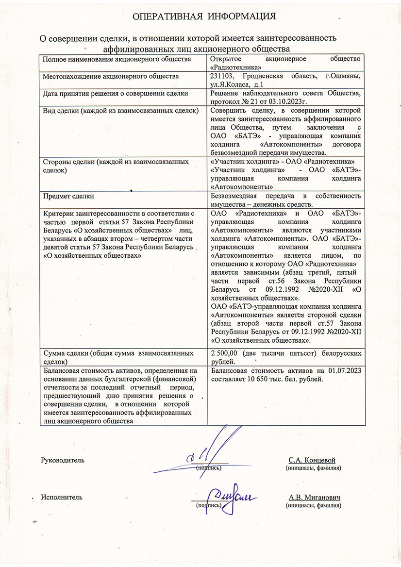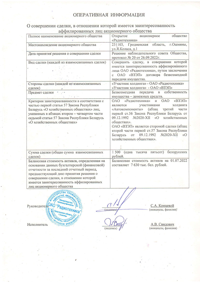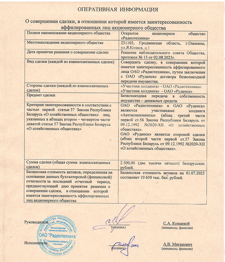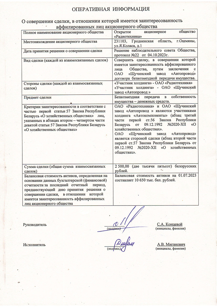 ОАО «Радиотехника» (Общество) проводит годовое общее собрание акционеров 26.03.202418/09/2023