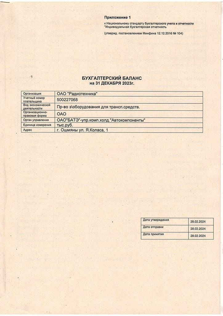 ОАО «Радиотехника» (Общество) проводит годовое общее собрание акционеров 19.09.202404/03/2024