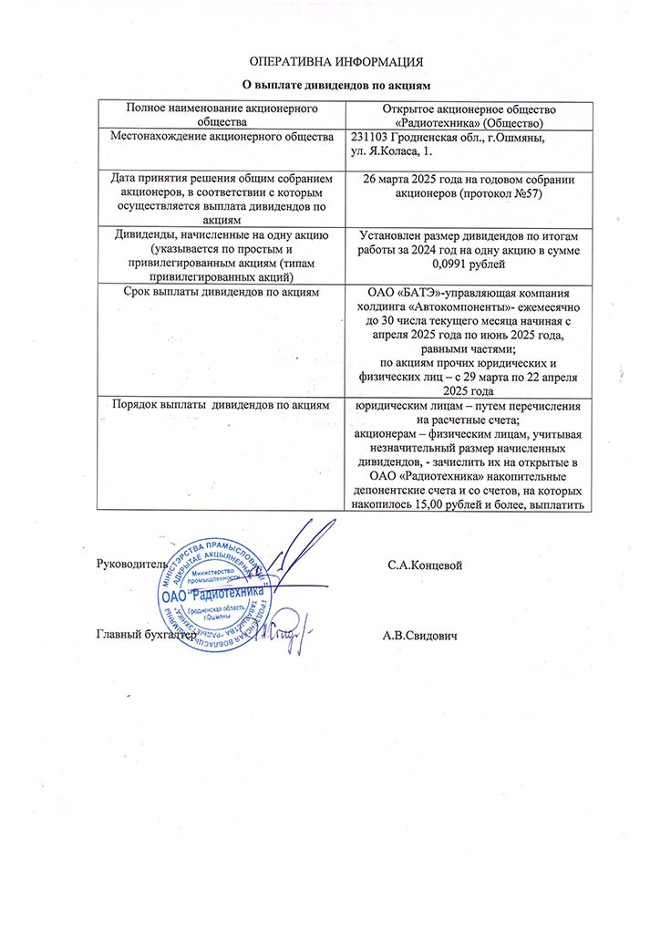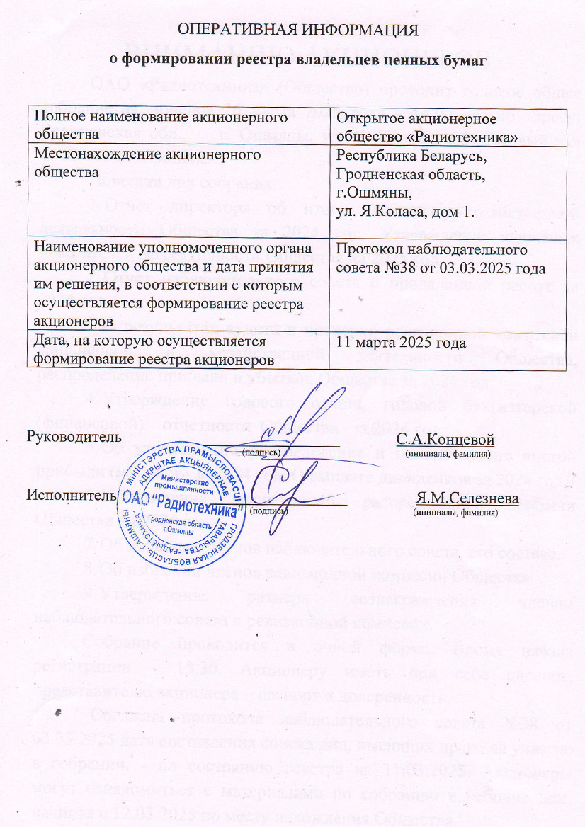 ОАО «Радиотехника» (Общество) проводит годовое общее собрание акционеров 26.03.202505/09/2024