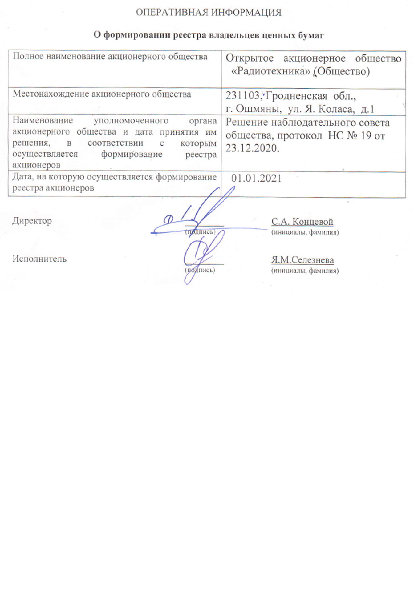 ОАО «Радиотехника» (Общество) проводит годовое общее собрание акционеров 29.03.2022Информация для акционеров